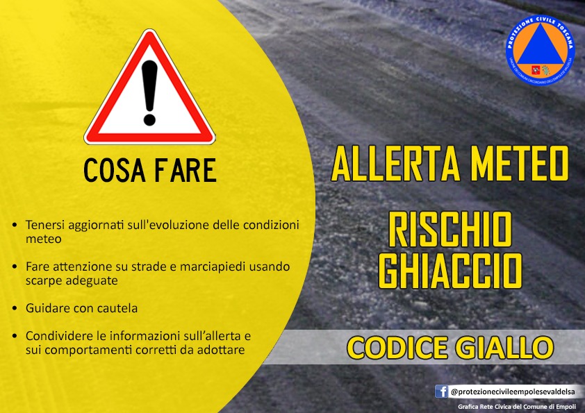 7 gennaio 2026, allerta meteo codice giallo per rischio ghiaccio