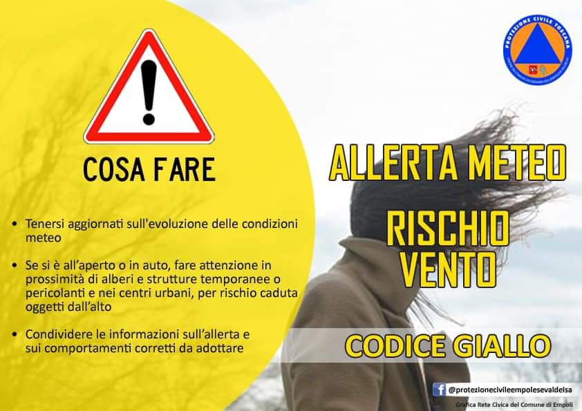 Allerta CODICE GIALLO in tutti i comuni dell'Empolese Valdelsa: