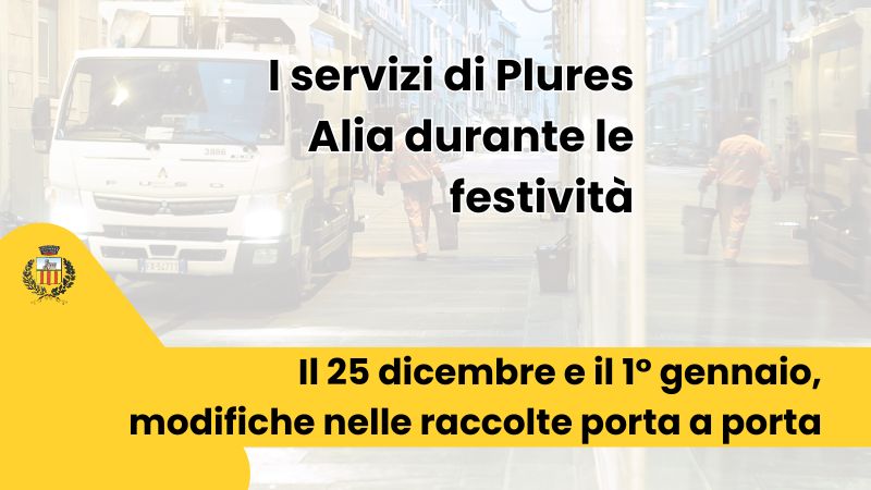 I servizi di Plures Alia durante le festività, il 25 dicembre e il 1° gennaio, modifiche nelle raccolte porta a porta: