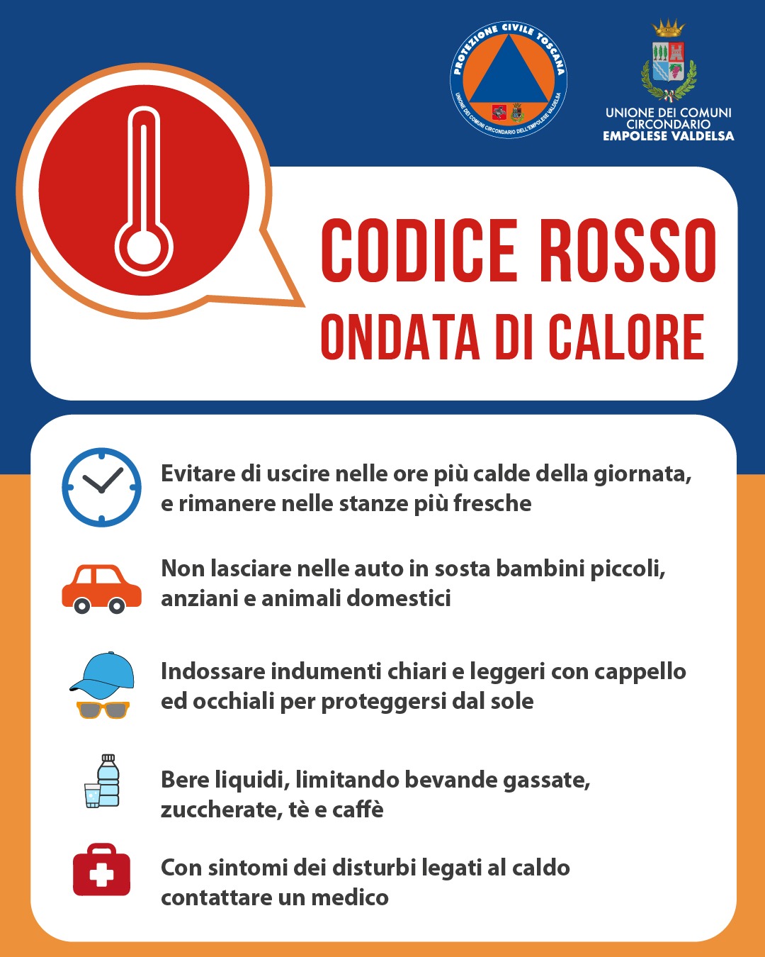 ⚠️ 🌡Condizioni di criticità per il rischio ondate di calore fino al 13 agosto 2025 in tutti i Comuni dell'Empolese Valdelsa