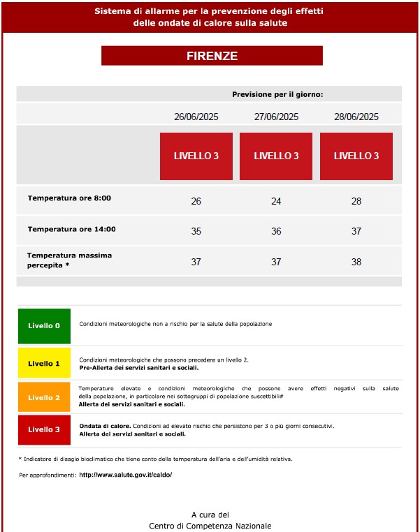 ⚠️ 🌡Condizioni di criticità per il rischio ondate di calore dal 26 al 28 giugno 2025 - 🔴Livello 3🔴