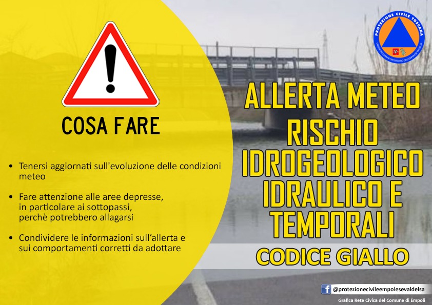 21 ottobre 2025, allerta meteo codice giallo per rischi idrogeologico-idraulico e temporali