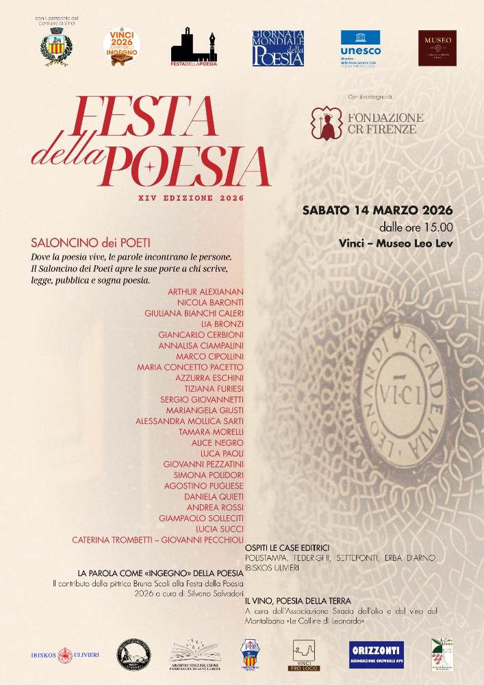 Nell’occasione sarà presentato il Quadro-Copertina del Quaderno di Sala della XIV Veglia dei Poeti, opera di un artista toscano.